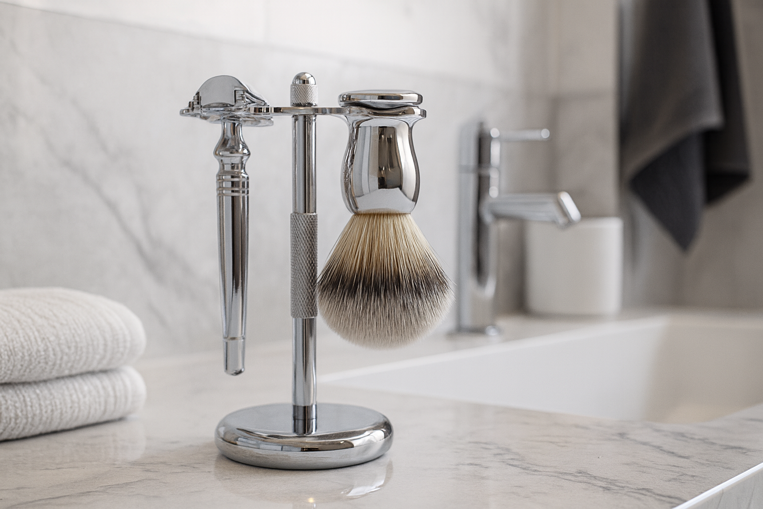 Perfekt als Geschenk gewesen. Mein Freund nutzt das Dornfels-Set jetzt täglich und schwärmt jedes Mal von der sanften Rasur. Der Ständer macht sich richtig gut im Bad.